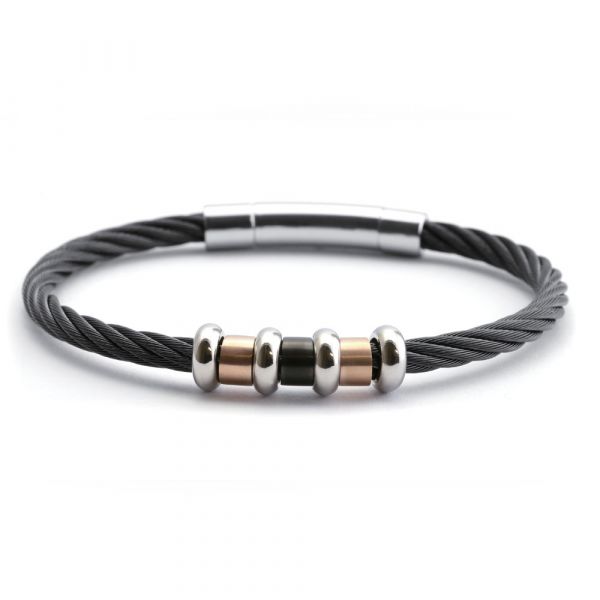 這款民族風和時尚手鍊來自北方國家,同時與城市潮流相呼應,以表達您的差異。選擇此4毫米不銹鋼黑色PVD鋼索扭矩,並用幾何設計的古銅色PVD和鋼珠裝飾,為您的野性和男性尺寸提供最新的密度。充滿Charriol的“與眾不同的藝術”的凱爾特風格,扭曲您的手勢和風格。並敢將它們疊放在手腕上,為您提供現代性和獨特性的附加值。
