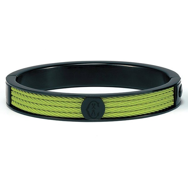 這款充滿活力且獨特的手鐲來自Charriol廣受歡迎的FOREVER系列,為您帶來戲劇性和奢華的細節選擇。受到女裝設計師的梭殼形狀的啟發,淡綠色的標誌性鋼纜的四條細線由黑色PVD框起來,並飾有該品牌的標誌。瑞士製造的超耐磨前衛設計,彰顯著Maison世界聞名的工藝和創新。
