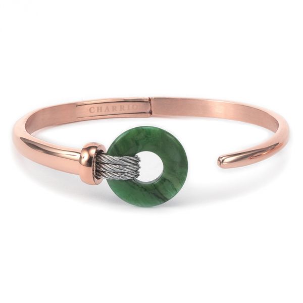 這種驚人的手鐲就像日本花園一樣毫不費力,非常適合那些喜歡簡單的樂趣並重視安靜的實現與和平的人。清新典雅的鉸鏈設計完美平衡且均衡,具有逐漸變細的玫瑰金PVD圓圈,標誌性的編織鋼纜繩環和精心製作的非洲玉環-水晶象徵著幸運與生命。這件觸覺柔美的作品充分展示了Charriols的藝術技藝,是您的瑰寶。