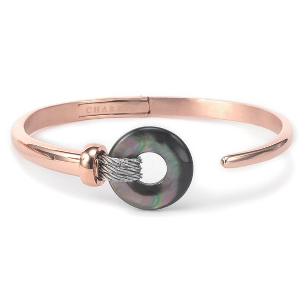 這種驚人的手鐲就像日本花園一樣毫不費力,非常適合那些喜歡簡單的樂趣並重視安靜的實現與和平的人。清新典雅的鉸鏈設計完美平衡且均衡,具有逐漸變細的玫瑰金PVD圓圈,我們標誌性的編織鋼纜繩環以及精心製作的黑色珍珠母圓。這件觸覺柔美的作品充分展示了Charriols的藝術技藝,是您的瑰寶。