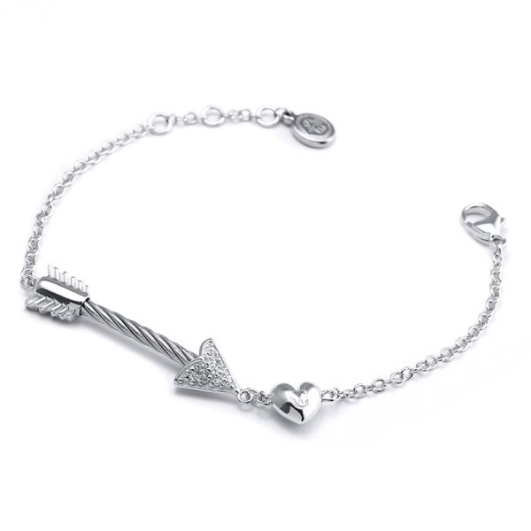 這款來自Crazy in Love系列的精緻手鍊因心臟和箭頭的魅力而煩惱,這為每一次女性手腕運動增添了波光粼粼的誘惑。細膩的針腳與細鋼絲繩構成別緻而時尚的二重奏,強調並增強了銀鍊的流動性。力量與甜蜜的聯盟。精緻浪漫。