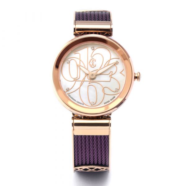 這款瑞士製造的石英手錶憑藉其東方風情的格子設計和手鍊上的別緻標誌性纜線,在Charriol廣受歡迎的FOREVER系列中佔有一席之地。它採用玫瑰金鍍金和梅花色不銹鋼精製而成,配有白色珍珠母貝錶盤和圖形化的切開阿拉伯數字,並飾有六顆氧化鋯石。超薄錶帶和32毫米錶殼尺寸完全符合設計中優雅簡約的說法。每天都有豪華魅力。
